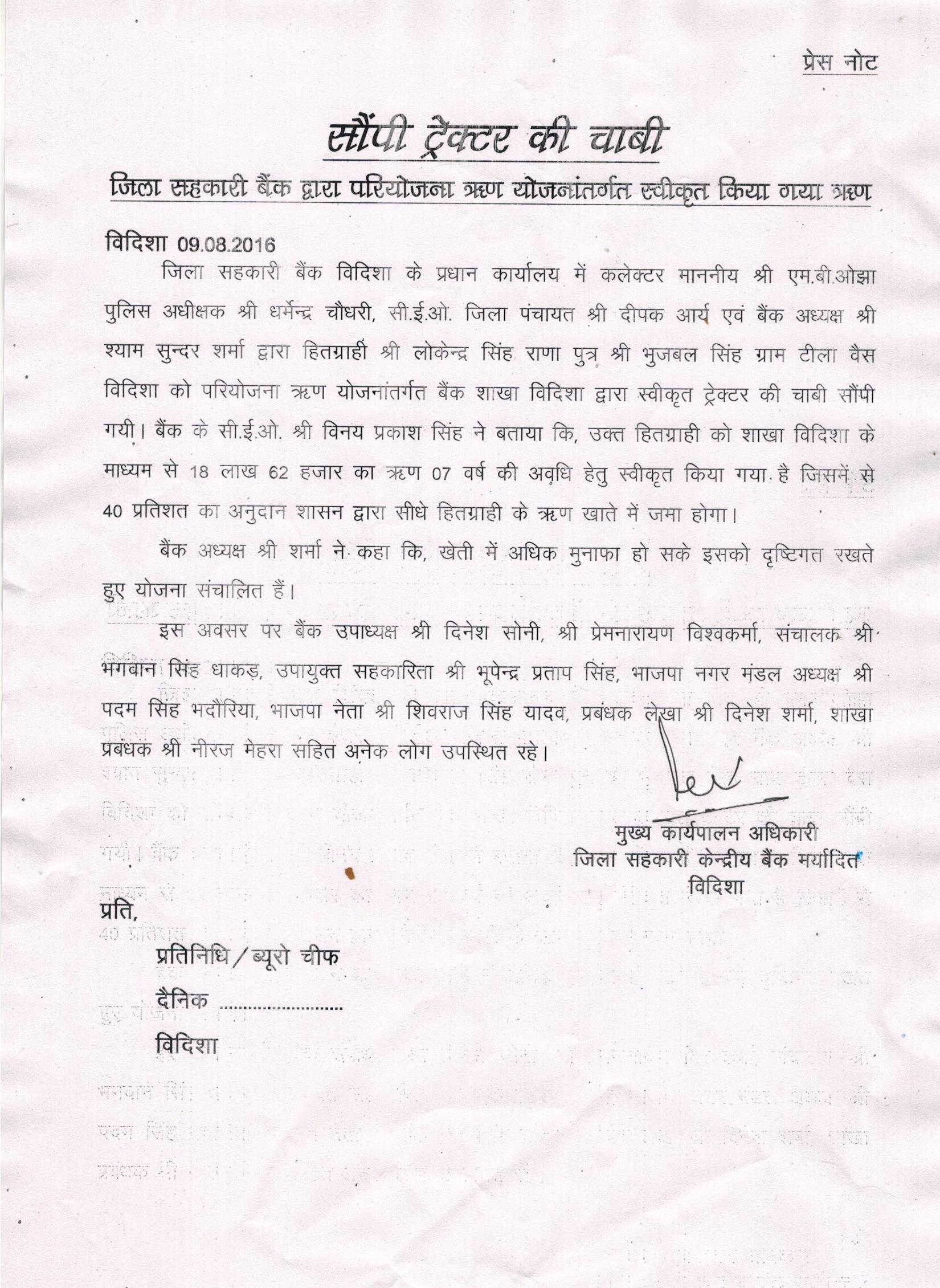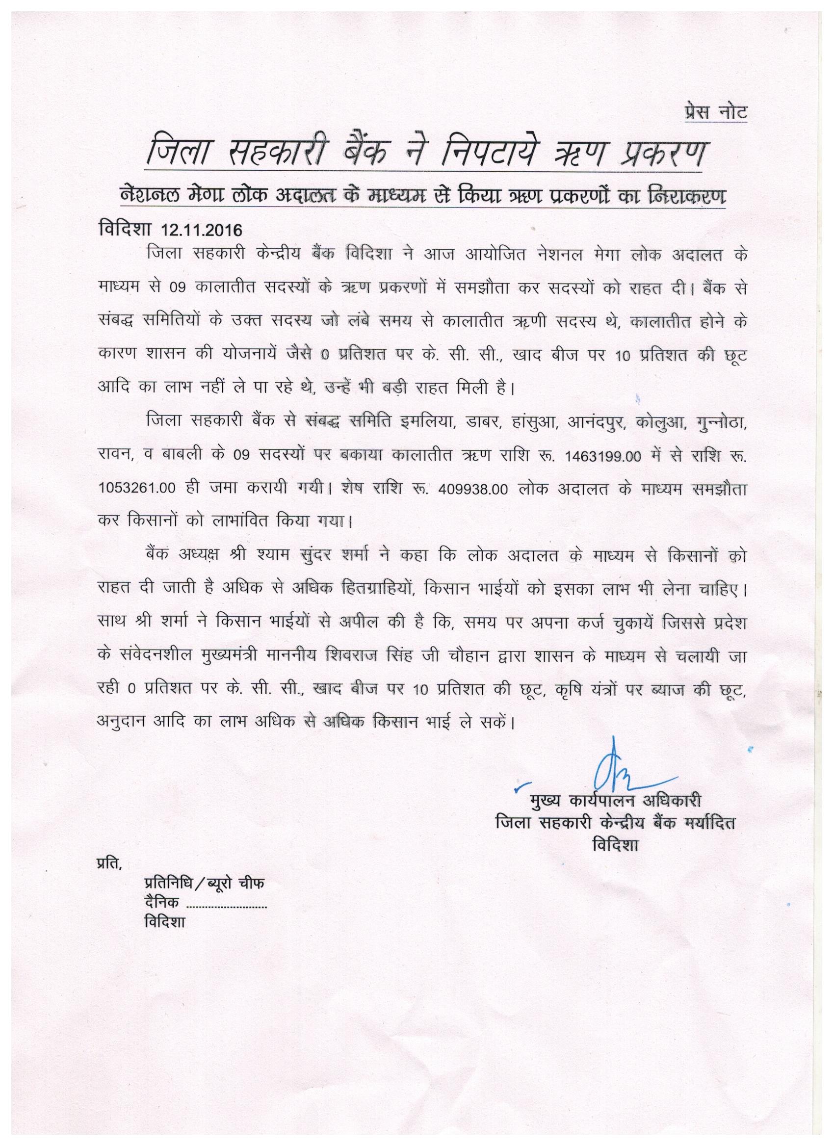 जिला शहकारी केंदà¥à¤°à¥€à¤¯ बैंक मरà¥à¤¯à¤¾à¤¦à¤¿à¤¤ विदिशा कि 98वी वरà¥à¤·à¤—ाà¤à¤
