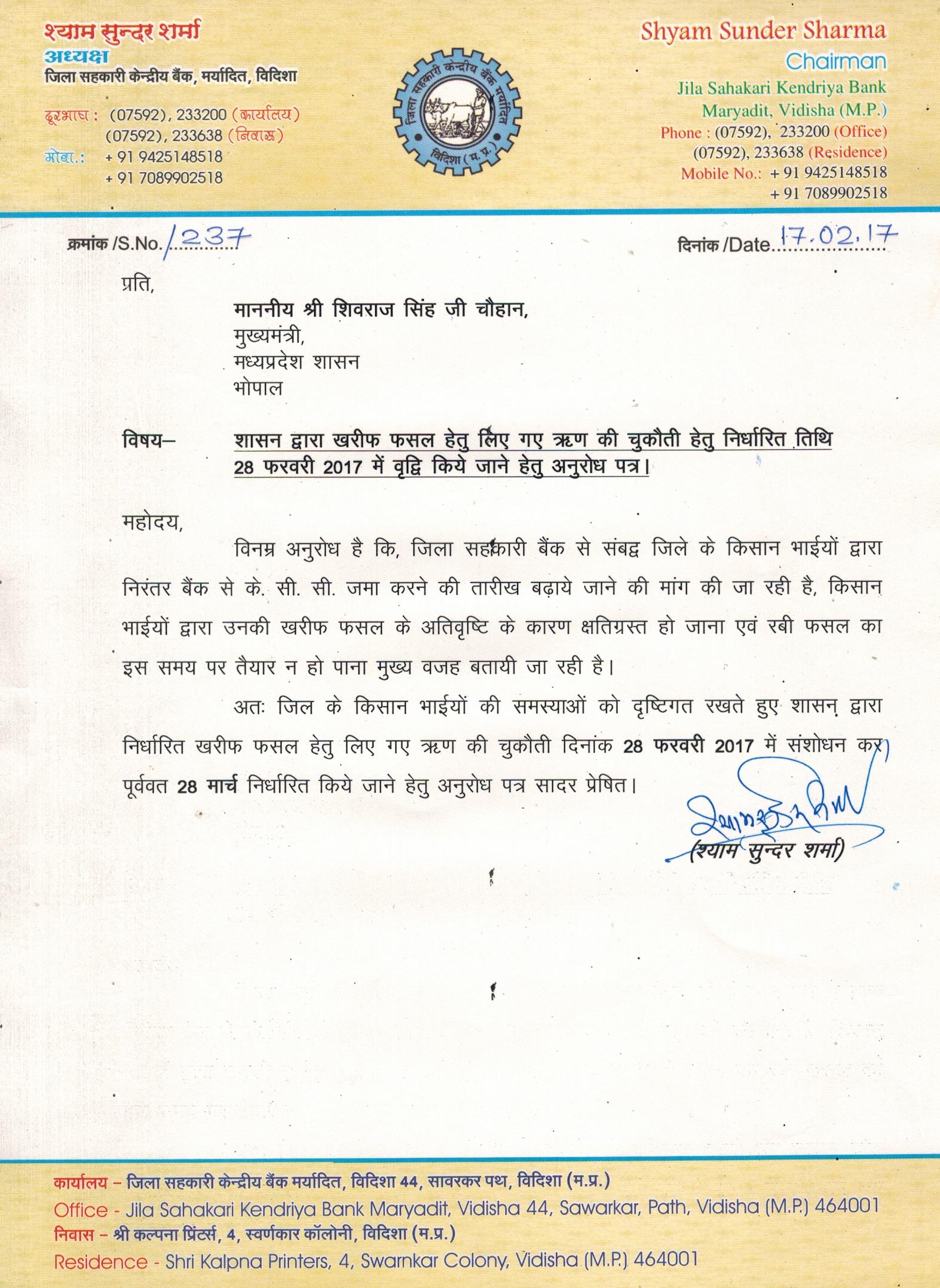 जिला सहकारी केंदà¥à¤°à¥€à¤¯ बैंक विदिशा